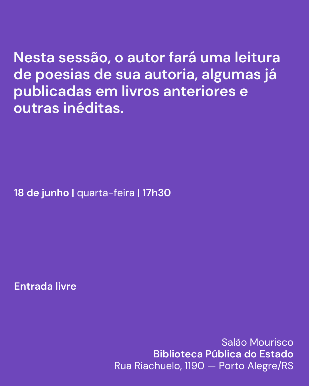 junho, às 17h30, no Salão Mourisco da BPE.